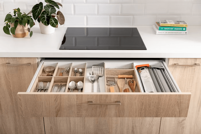A key feature for modern urban homes, these concealed bins offer dry and wet waste separation, promoting sustainable habits while keeping your modular kitchen clean and organised.