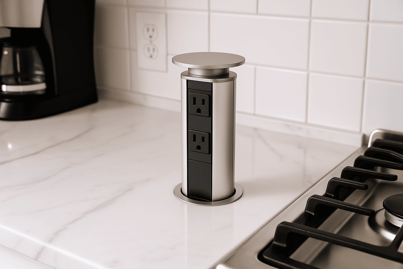 These discreet, space-saving outlets can be hidden in countertops or backsplashes, popping up only when needed. Ideal for charging gadgets or plugging in appliances while keeping the kitchen design minimal and uncluttered.