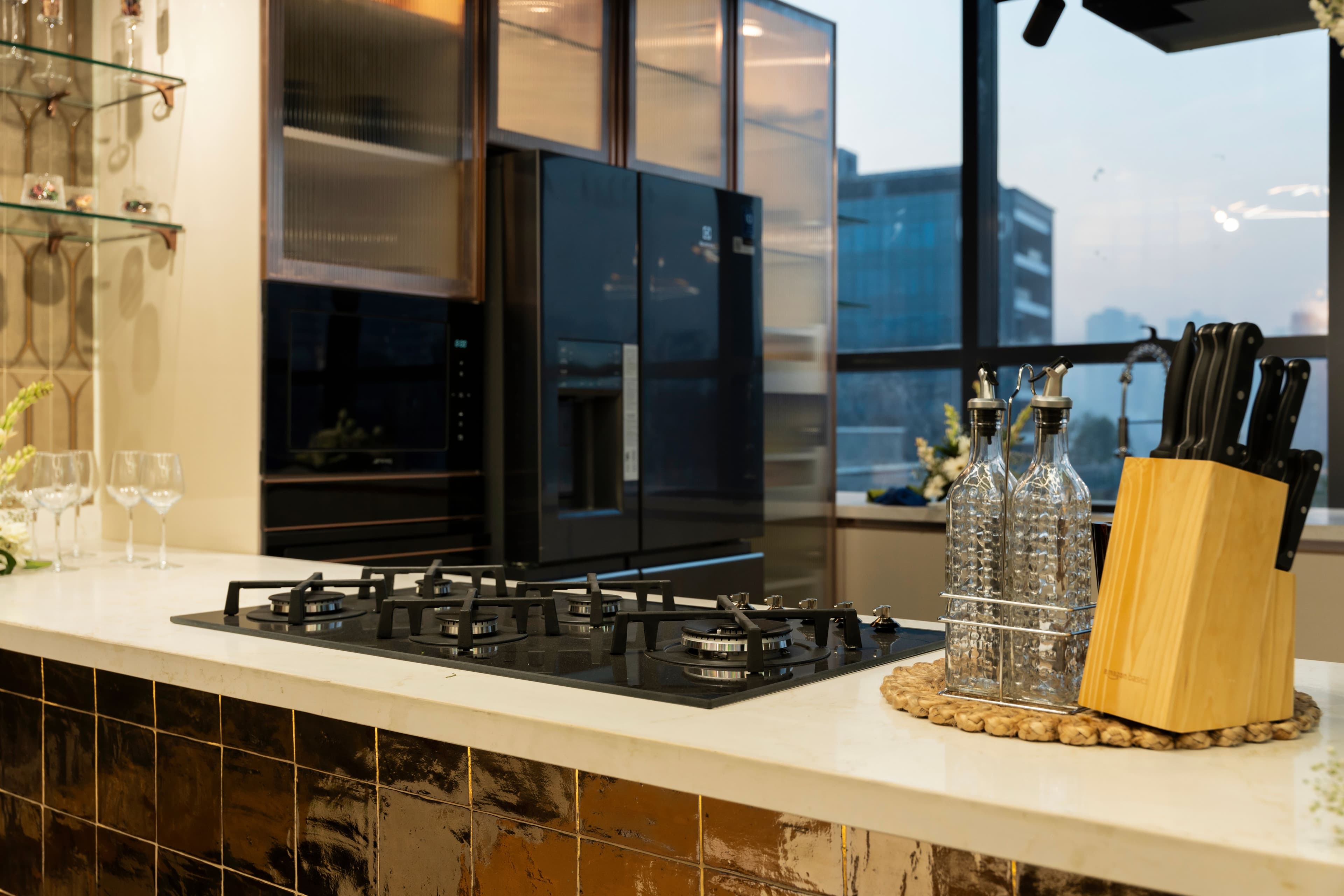 - Copper Utensils Display: A nod to traditional kitchens.