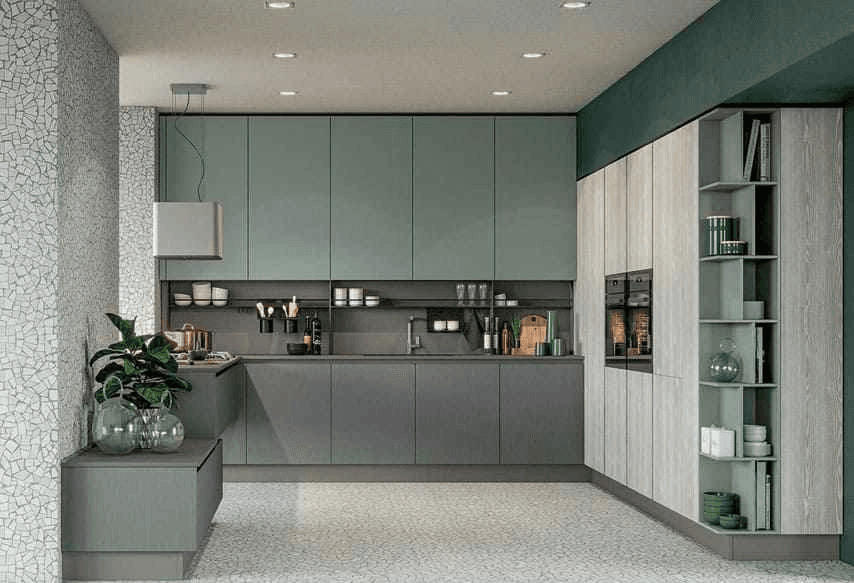 - Want a high-end luxury kitchen? Deep hues like emerald green or navy blue paired with gold or silver accents offer elegance.